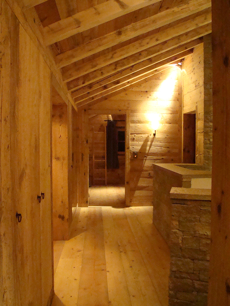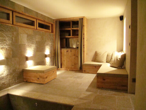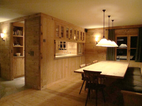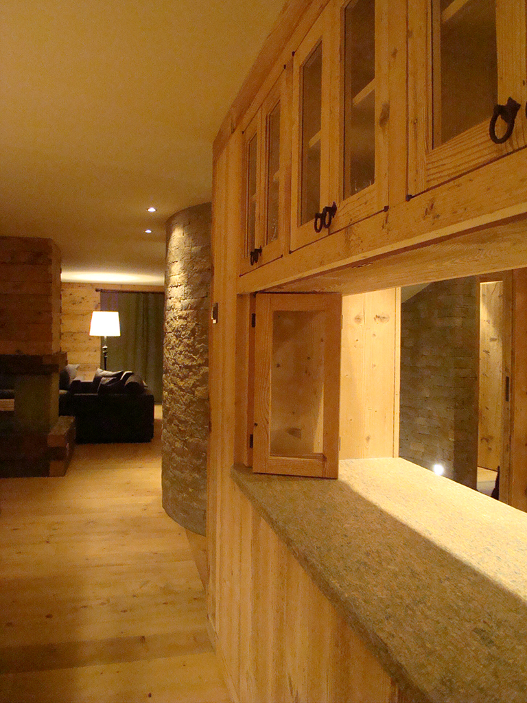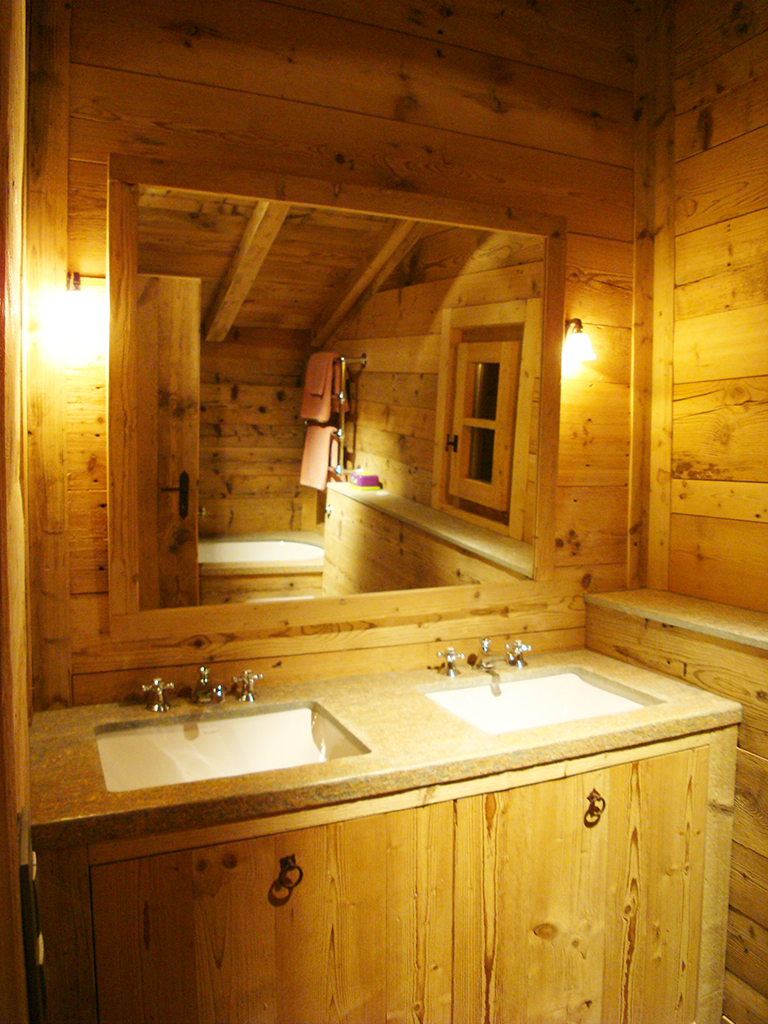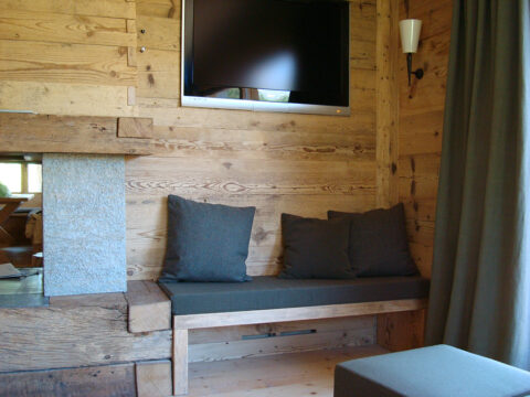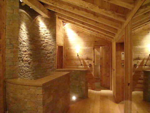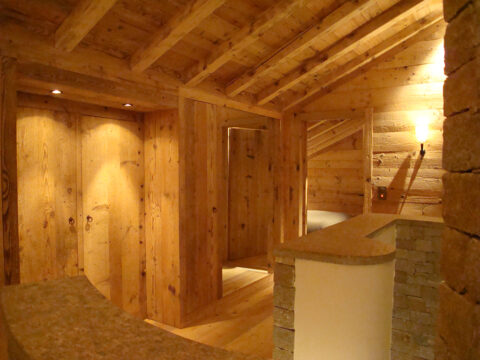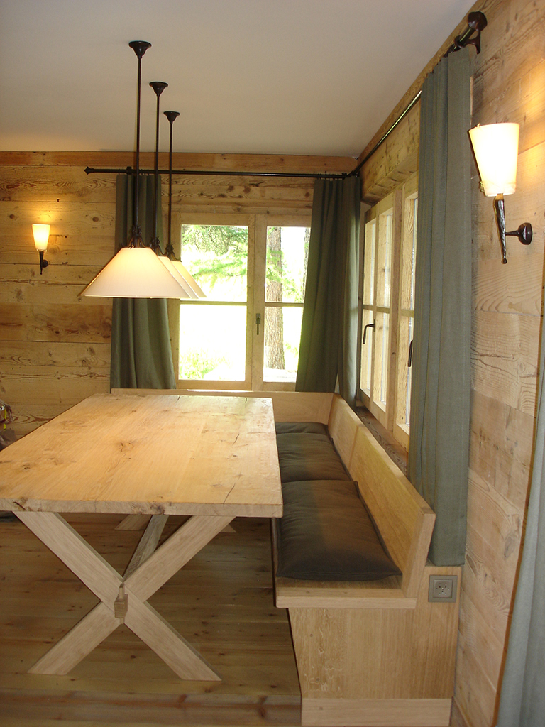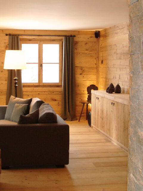 Family home in the mountains where memories continue to be written anew. Restoration and complete renovation of a cottage dating from the years 1950-60. Extension of the lower level for the creation of a wellness area with steam room and jacuzzi. Interface and client-architect coordination. Follow-up of construction site and project management for the client. Layout and creation of all custom furniture. Textile creations, accessorizing of the whole house and setting up.