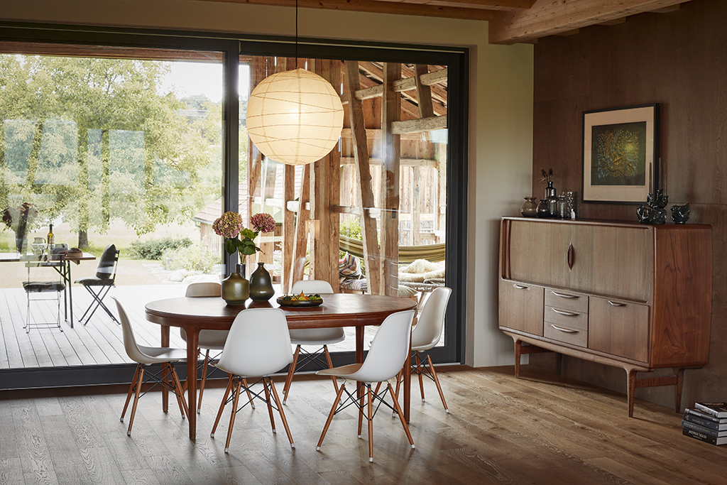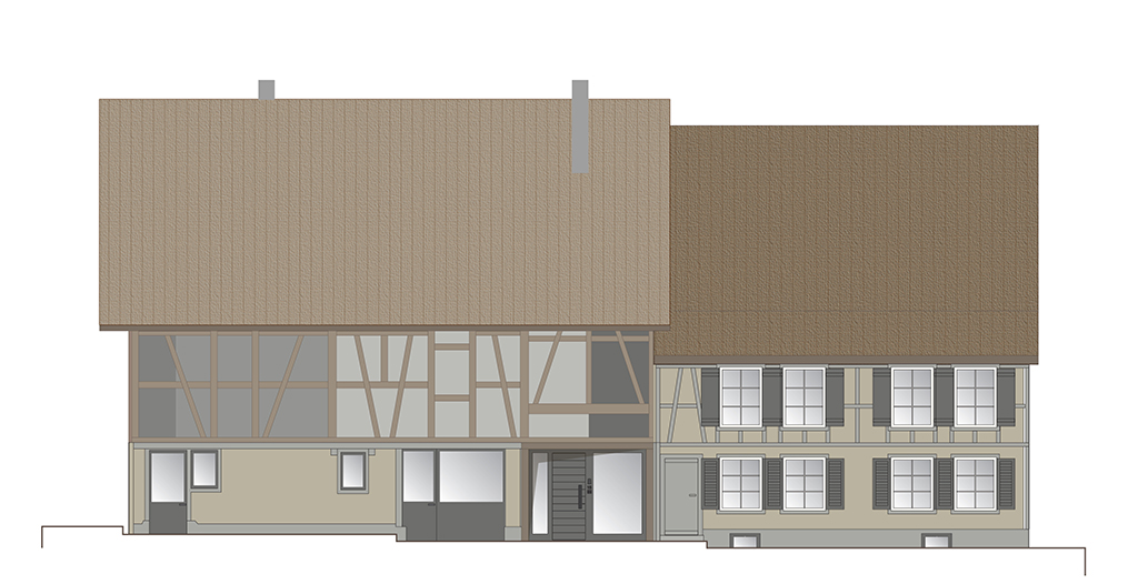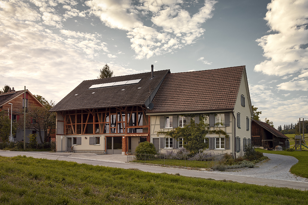 New life for an old farmhouse on a plot of half a hectare, in the countryside close to Lake Constance. Renovation of the existing building and layout of the barn part in a residential house on 3 levels. Interior and exterior decoration of the set including furniture creation and accessorizing of each space. Landscaping of the green spaces.