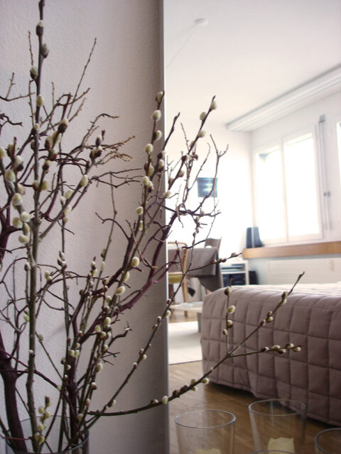 Splendid view of the mountains in the background of Lake Zurich next to this studio of 45 m2, in the district of Enge. Layout, styling and shopping, made-to-measure, set up.