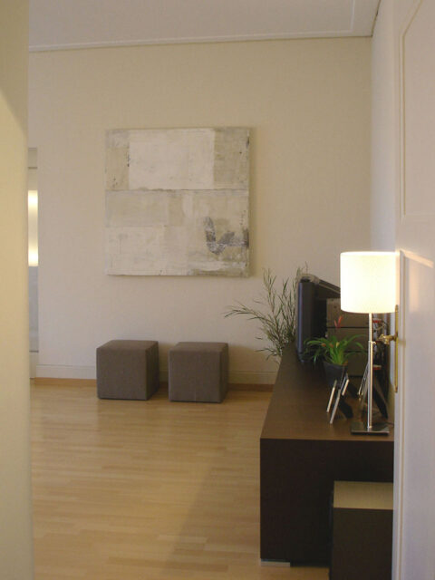 P[/ dropcap] artial arrangement of an apartment of 100 m2, including entrance, living room and dining room and office. Production of tapestries and tailor-made textile creations. Styling and setting up.