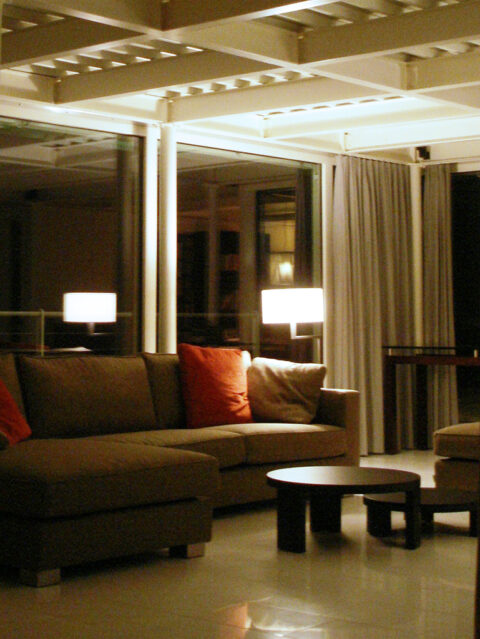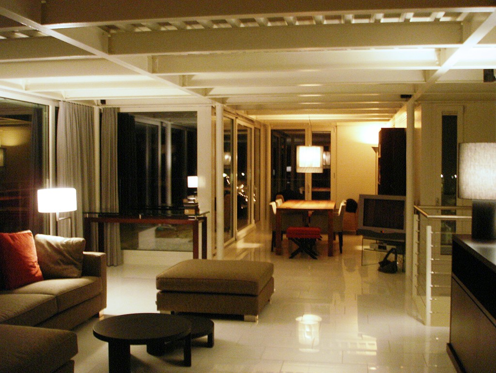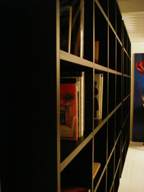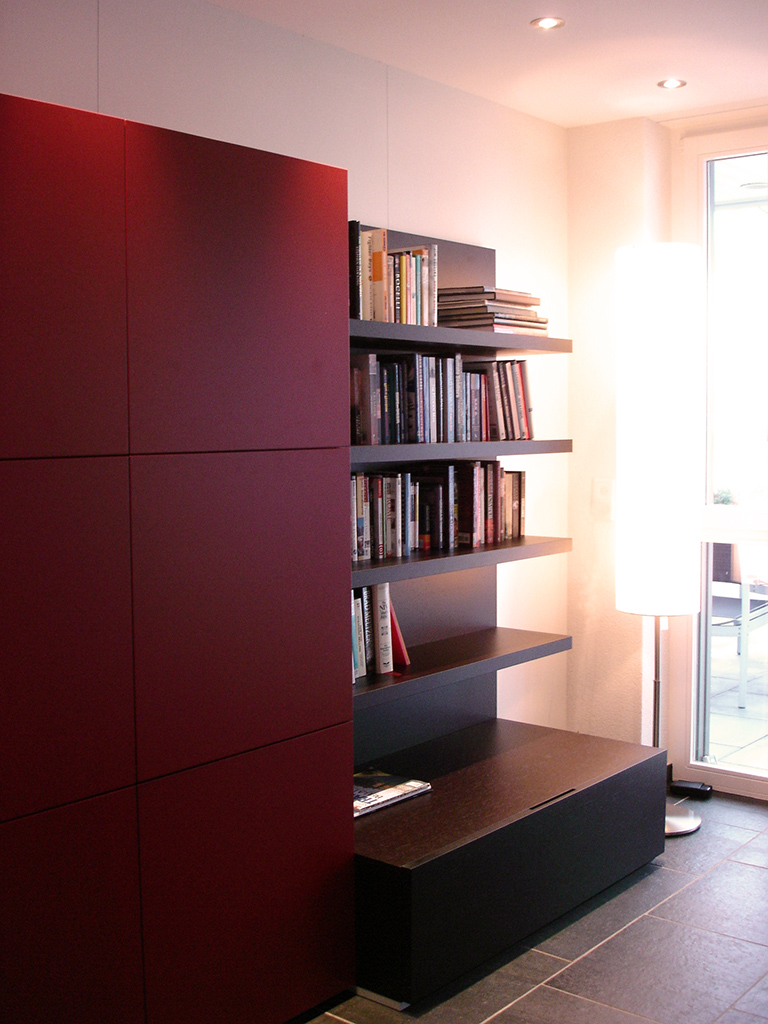 On the heights of Lake Zurich, layout and decoration of a house on two floors. Creation of custom furniture for the entrance, the guest toilet and the wardrobe, the bathroom – sauna and the library.